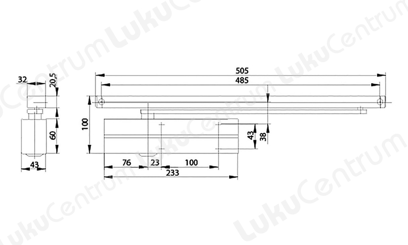 Basic guide rail door closer.