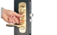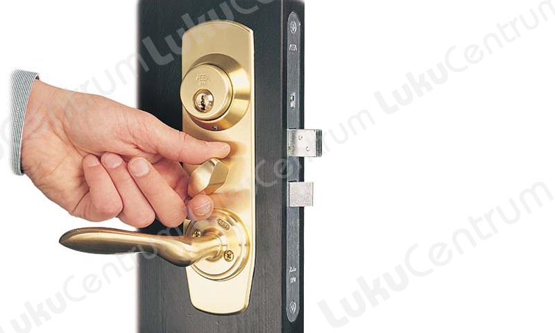 - Kodust lahkudes saab väändenupu blokeerida luku otsaplaadil olevast niplist, seejärel ei ole enam uksest võtmeta väljumine võimalik.