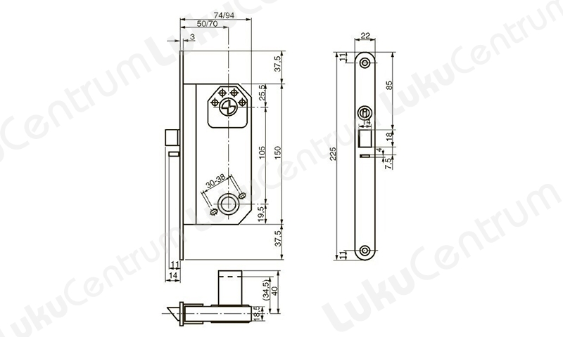 - Backset 50 mm