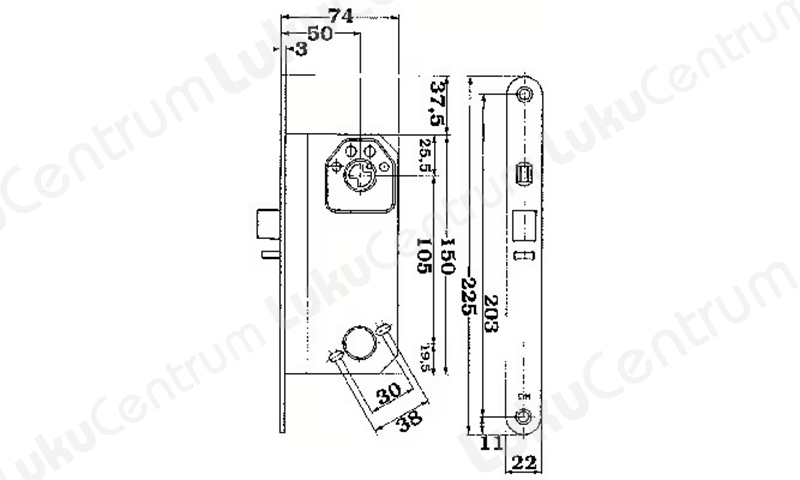 - Backset 50 mm