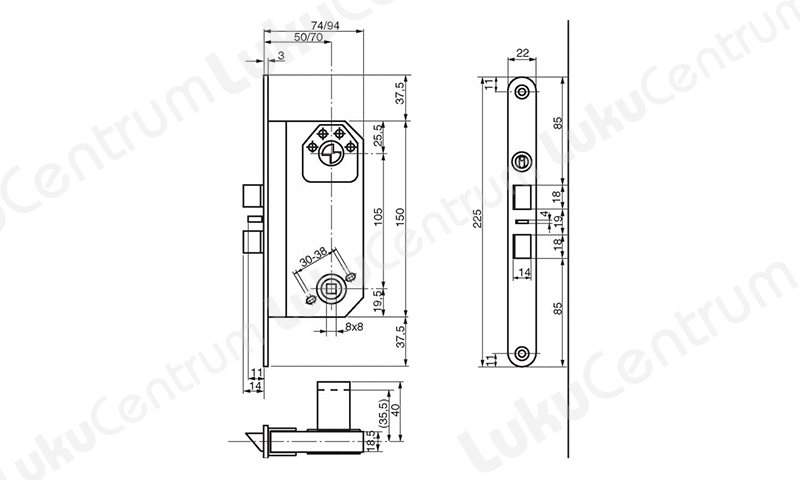 - Backset e. tapikaugus: 50 mm
